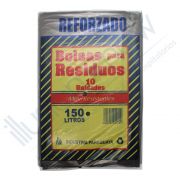 Paquete de bolsas negras para basura de 150 litros. reforzada, contiene 10 unidades